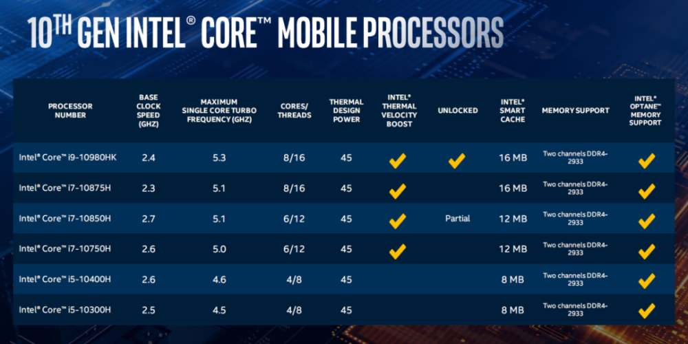 比照九代,全系基准频率遍及提高100MHz或未变,最高加快频率提高了300-500MHz,i9-10980HK、i710875H、i7-10850H、i7-10750H四款CPU的最高加快频率更是超过了5GHz。