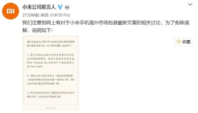 小米官方就近期网上呈现的关于小米手机海外商场包装最新案牍的评论做出了回应。